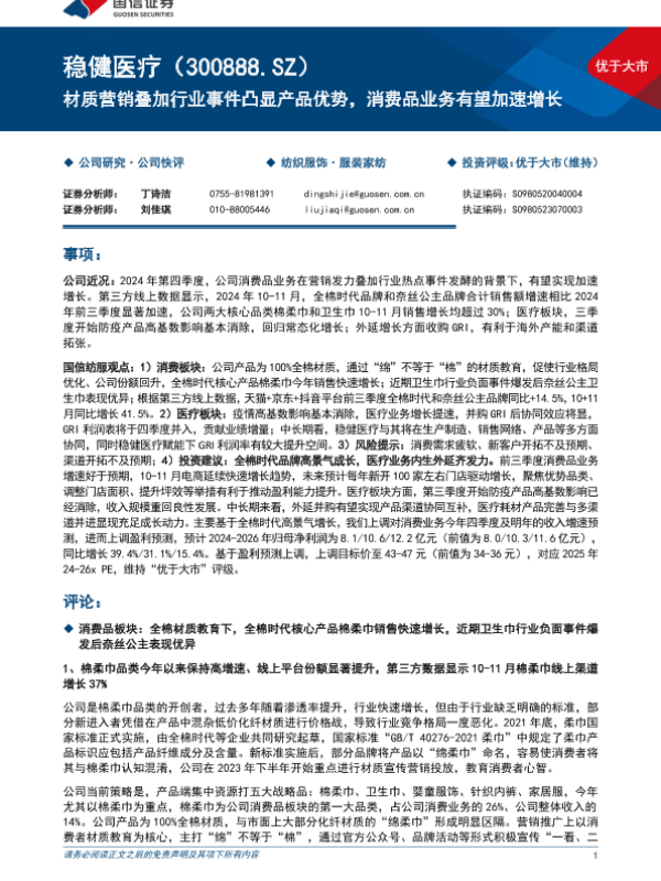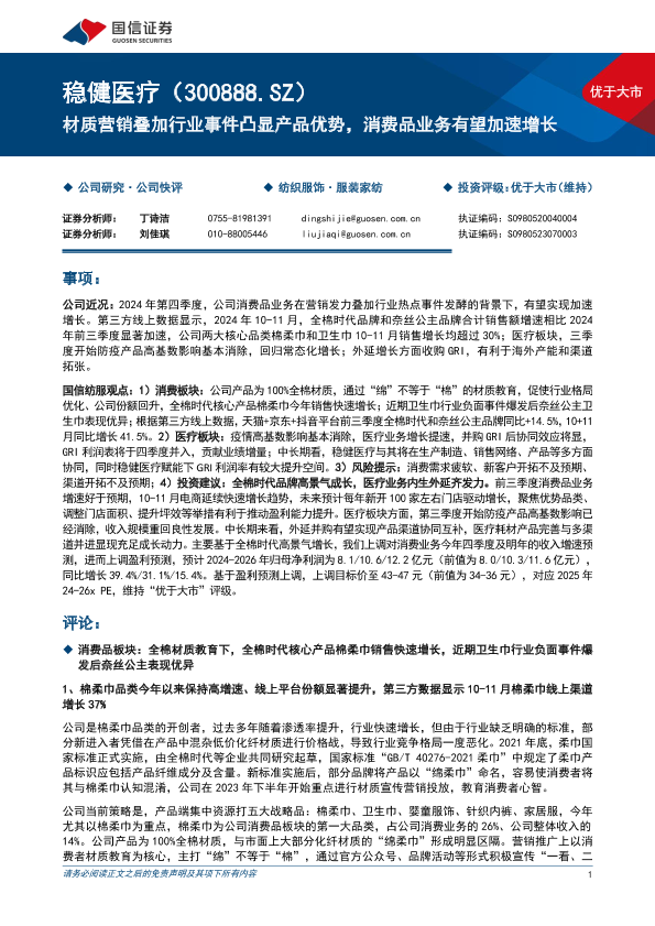 【国信证券】【20241213】稳健医疗(300888)材质营销叠加行业事件凸显产品优势,消费品业务有望加速增长-11页
