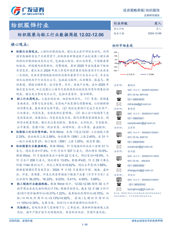 【广发证券】【20241209】纺织服饰行业:纺织服装与轻工行业数据周报-241209-31页
