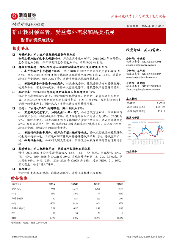 【浙商证券】【20241208】耐普矿机(300818)深度报告:矿山耗材领军者,受益海外需求和品类拓展-31页