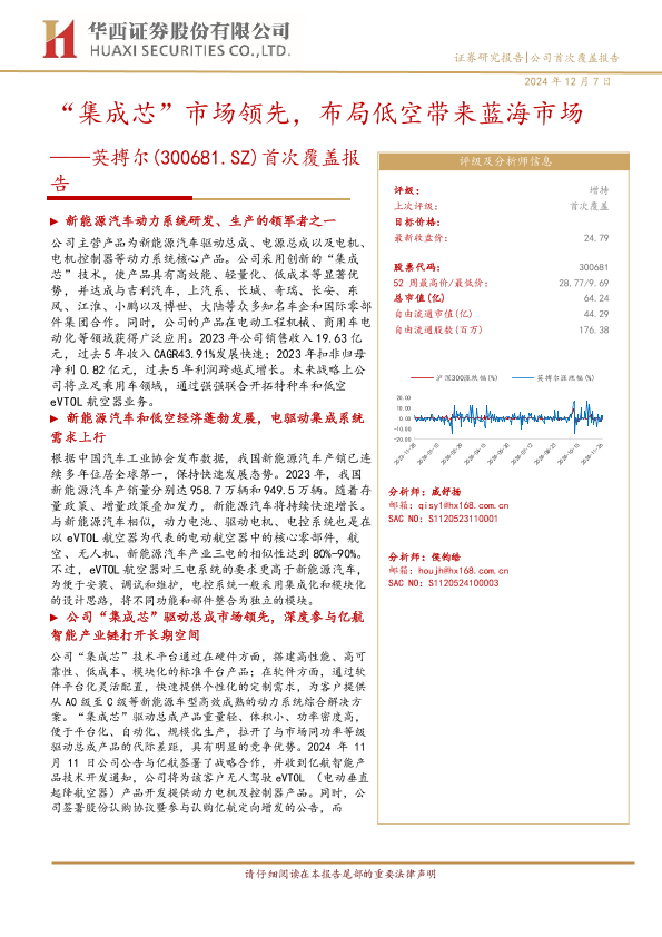 【华西证券】【20241207】英搏尔(300681)首次覆盖报告:“集成芯”市场领先,布局低空带来蓝海市场-31页