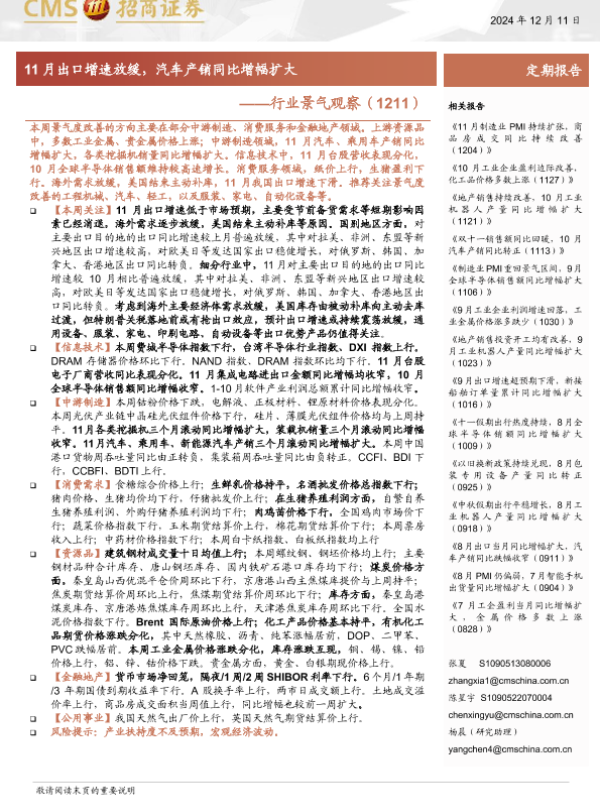 【海通证券】【20241211】行业景气观察:11月出口增速放缓,汽车产销同比增幅扩大-33页