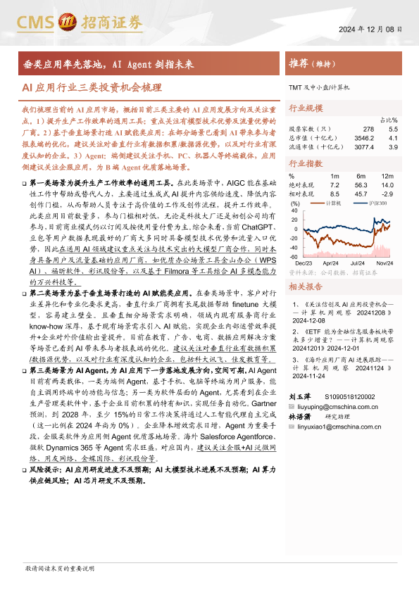 Agent AI应用 垂类应用 投资机会 计算机行业