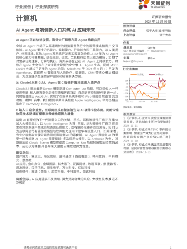 【天风证券】【20241209】计算机行业深度研究:AI+Agent与端侧新入口共筑AI应用未来-19页