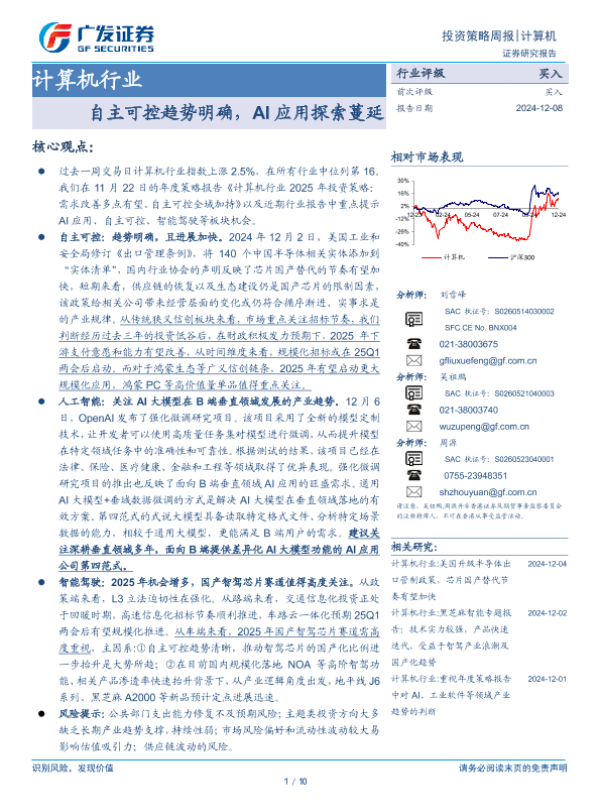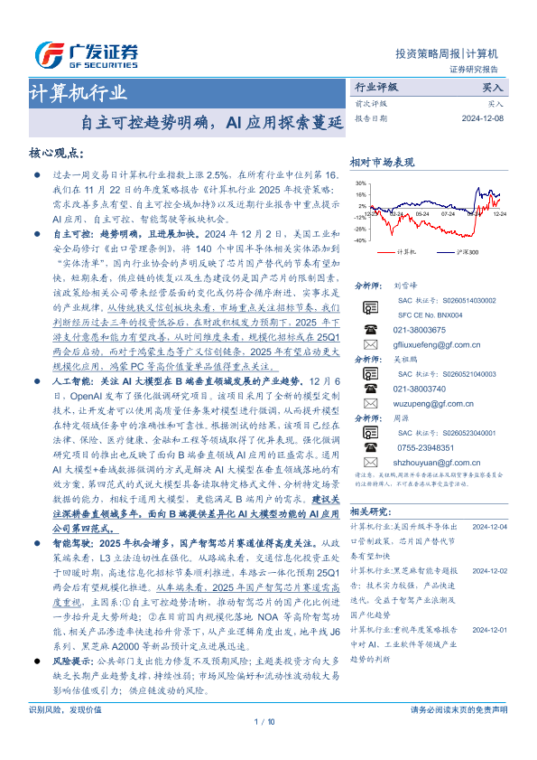 【广发证券】【20241208】计算机行业:自主可控趋势明确,AI应用探索蔓延-10页