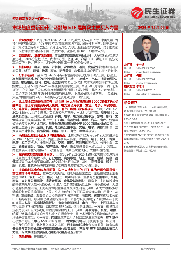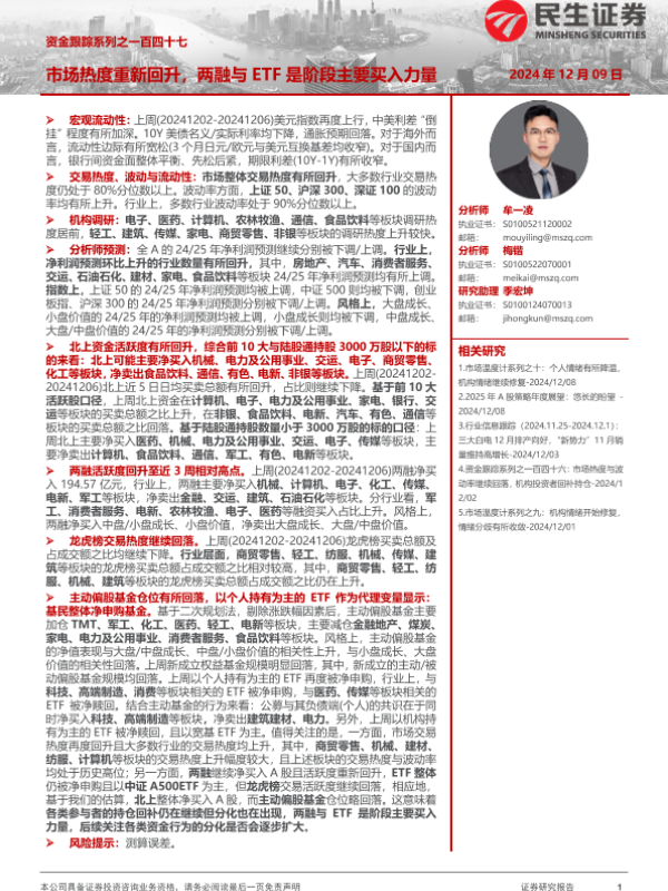 【民生证券】【20241209】资金跟踪系列之一百四十七:市场热度重新回升,两融与ETF是阶段主要买入力量-36页