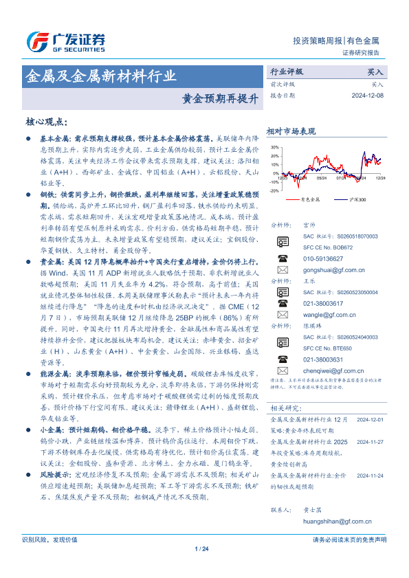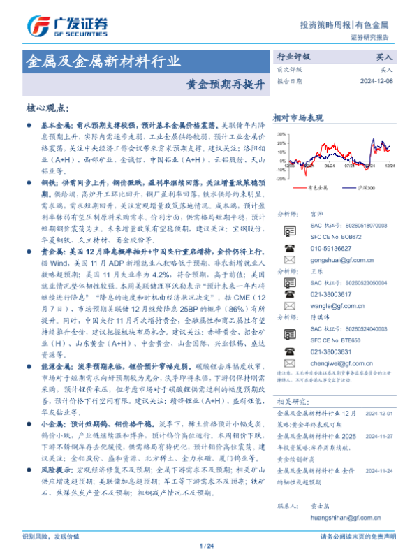 【广发证券】【20241208】金属及金属新材料行业:黄金预期再提升-24页