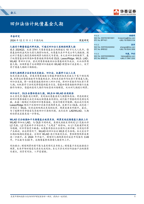 【华泰证券】【20241211】金工深度研究:回归法估计纯债基金久期-24页