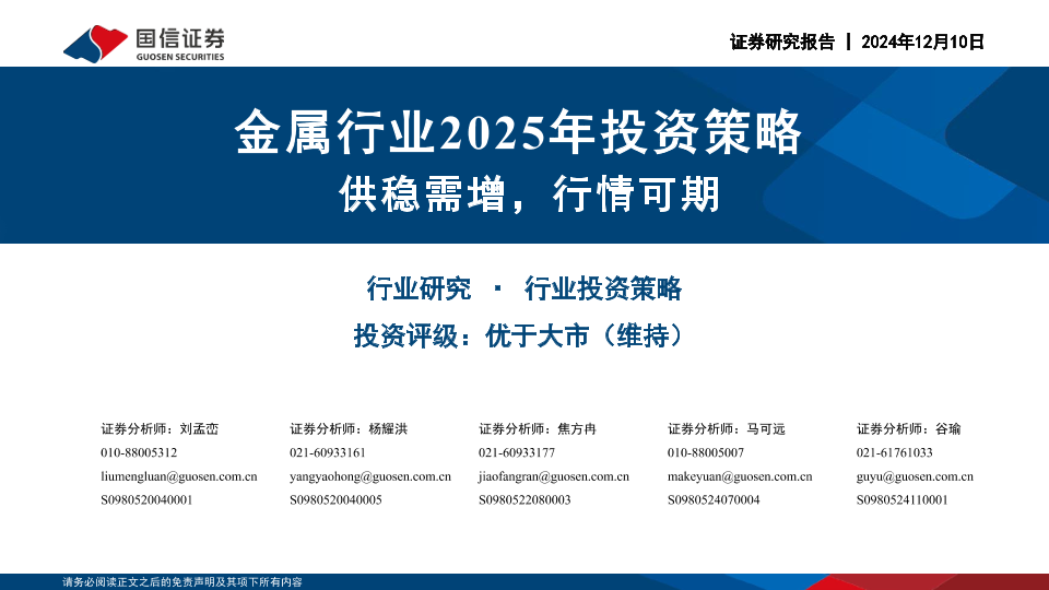 【国信证券】【20241210】金属行业2025年投资策略:供稳需增,行情可期-78页