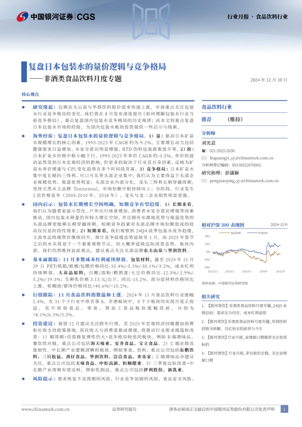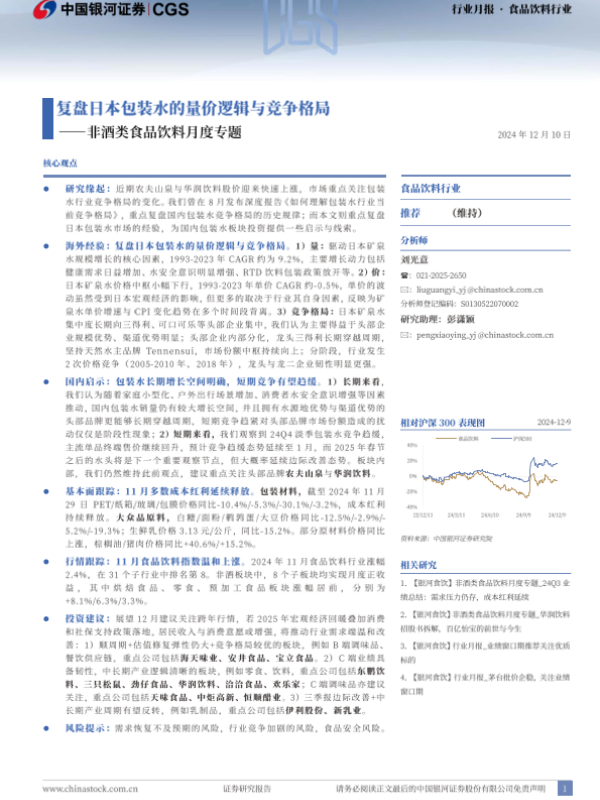 【银河证券】【20241210】非酒类食品饮料行业月度专题:复盘日本包装水的量价逻辑与竞争格局-18页