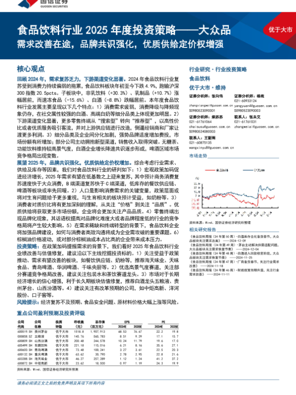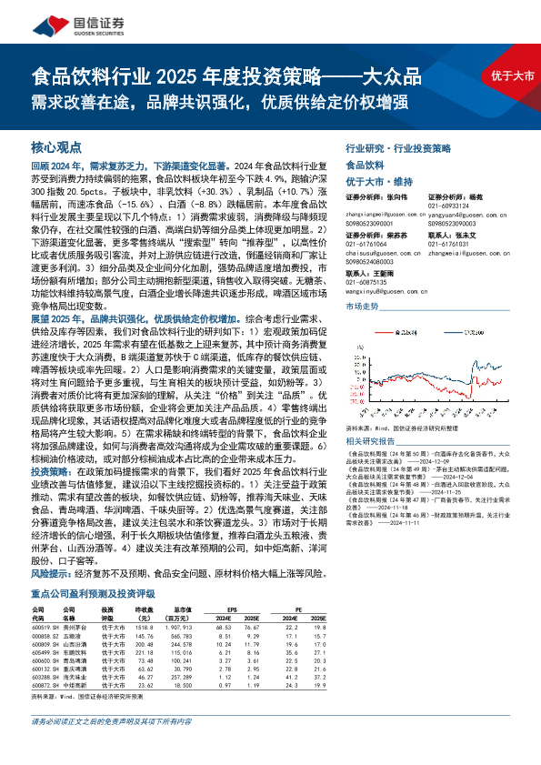 【国信证券】【20241213】食品饮料行业2025年度投资策略:大众品,需求改善在途,品牌共识强化,优质供给定价权增强-40页