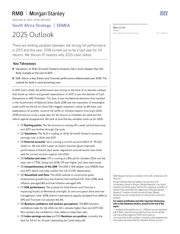 【Morgan Stanley】【2024】Morgan Stanley-South Africa Strategy 2025 Outlook-16页