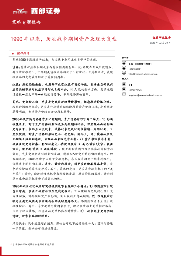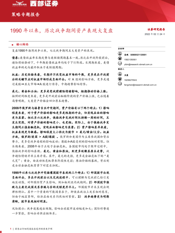 【西部证券】【20220224】1990年以来,历次战争期间资产表现大复盘-27页