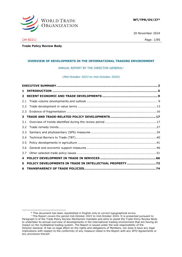 【世界贸易组织(WTO)】【20241120】2024年全球贸易发展年度概览报告-85页