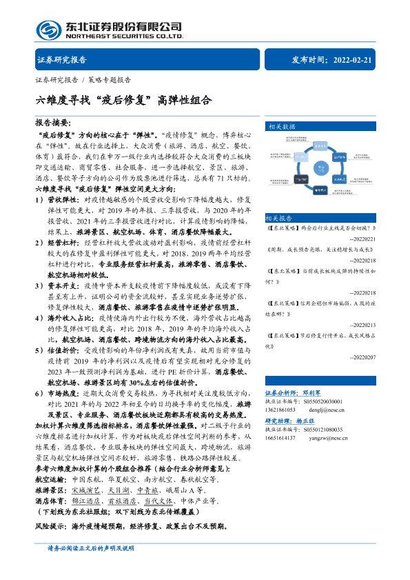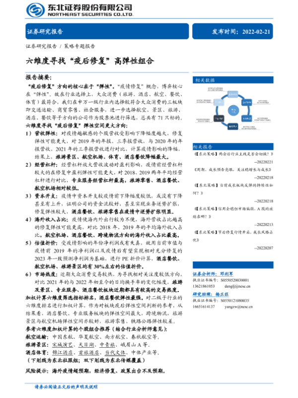 【东北证券】【20220221】策略专题报告:六维度寻找“疫后修复”高弹性组合-17页