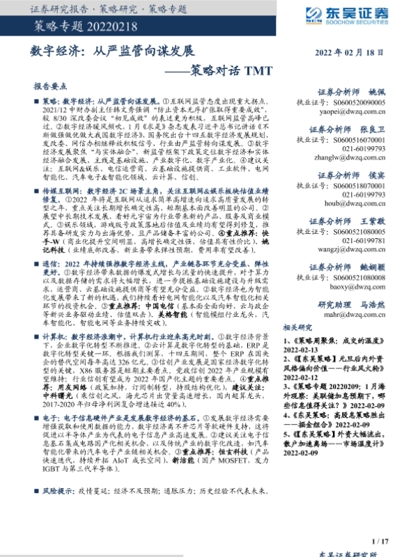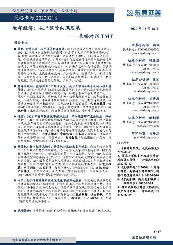【东吴证券】【20220218】策略对话TMT:数字经济,从严监管向谋发展-17页