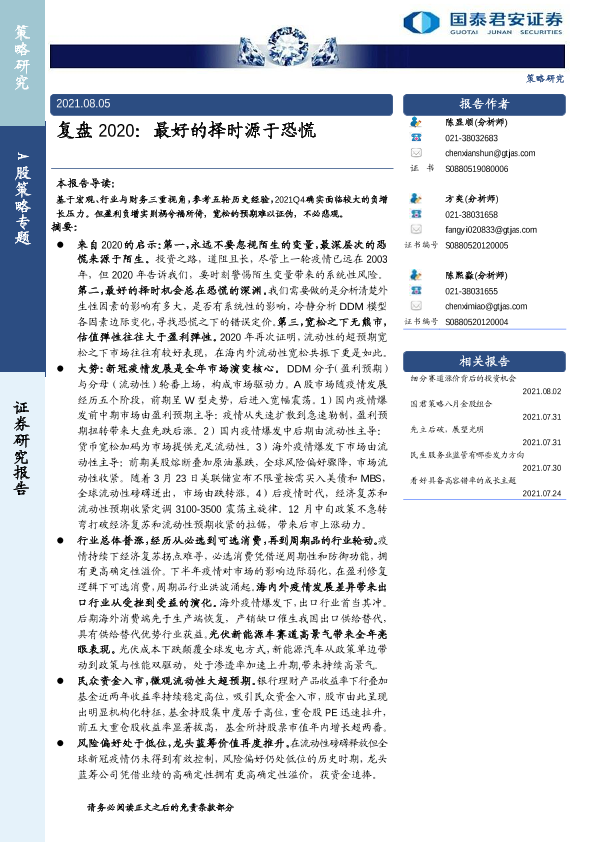 【国泰君安证券】【20210805】复盘2020:最好的择时源于恐慌-20页