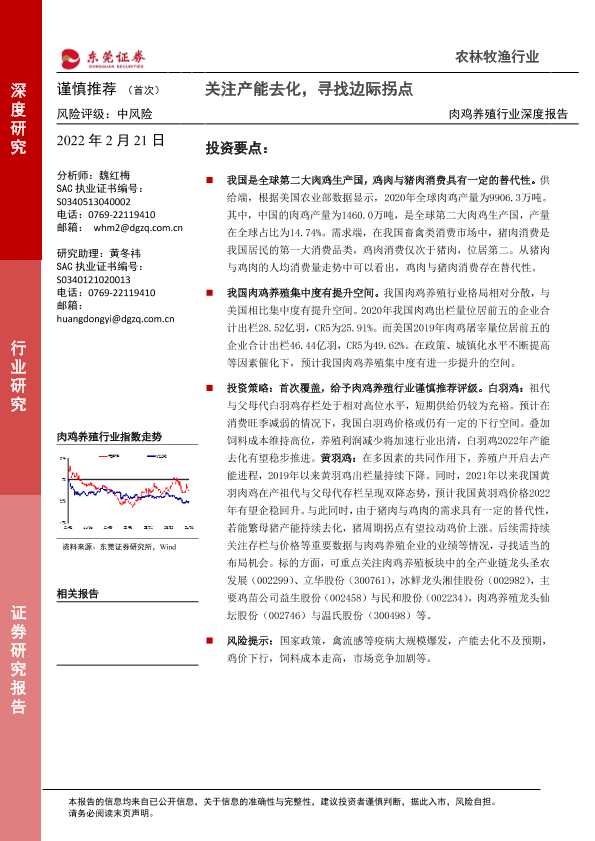 【东莞证券】【20220221】肉鸡养殖行业深度报告:关注产能去化,寻找边际拐点-34页