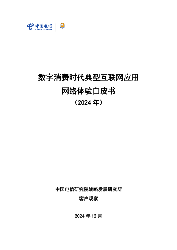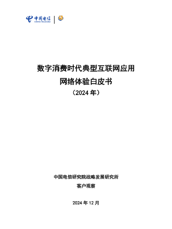 【中国电信研究院战略发展研究所】【202412】数字消费时代典型互联网应用网络体验白皮书-30页
