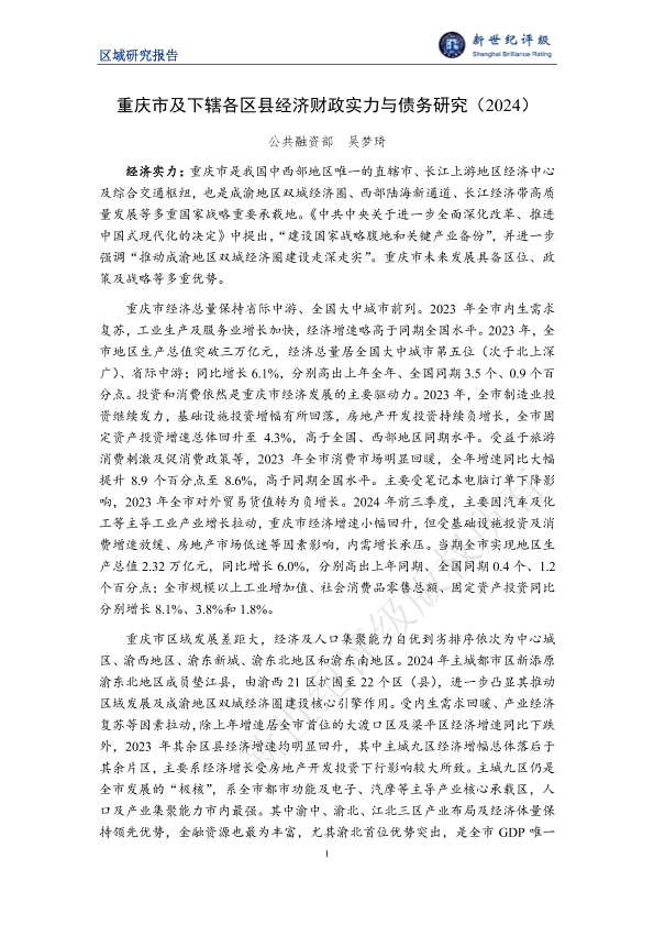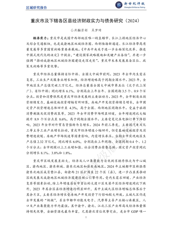 【公共融资部】【2024】重庆市及下辖各区县经济财政实力与债务研究(2024)-35页