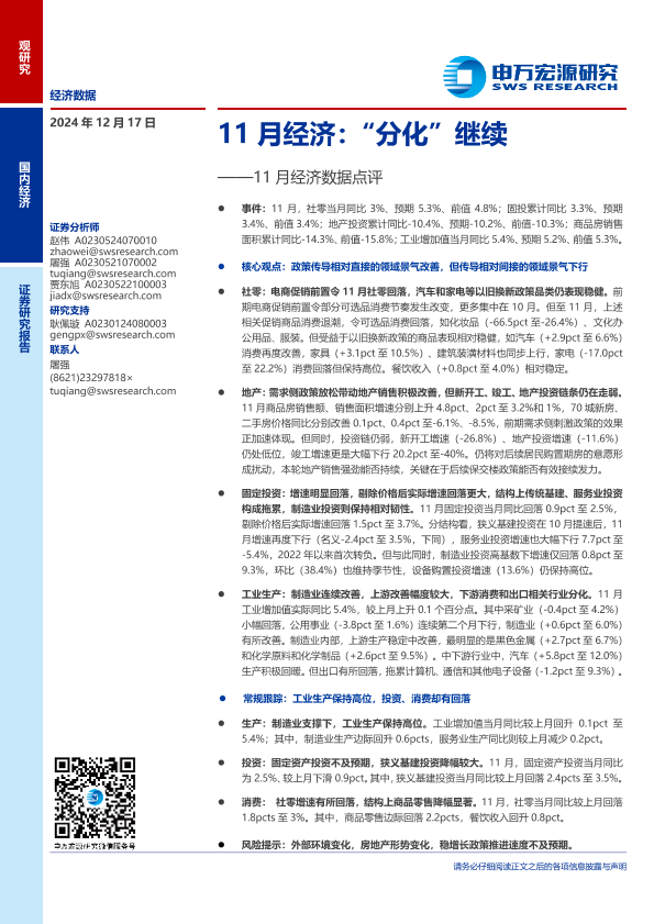 【申万宏源】【20241217】11月经济数据点评:11月经济,“分化”继续-10页
