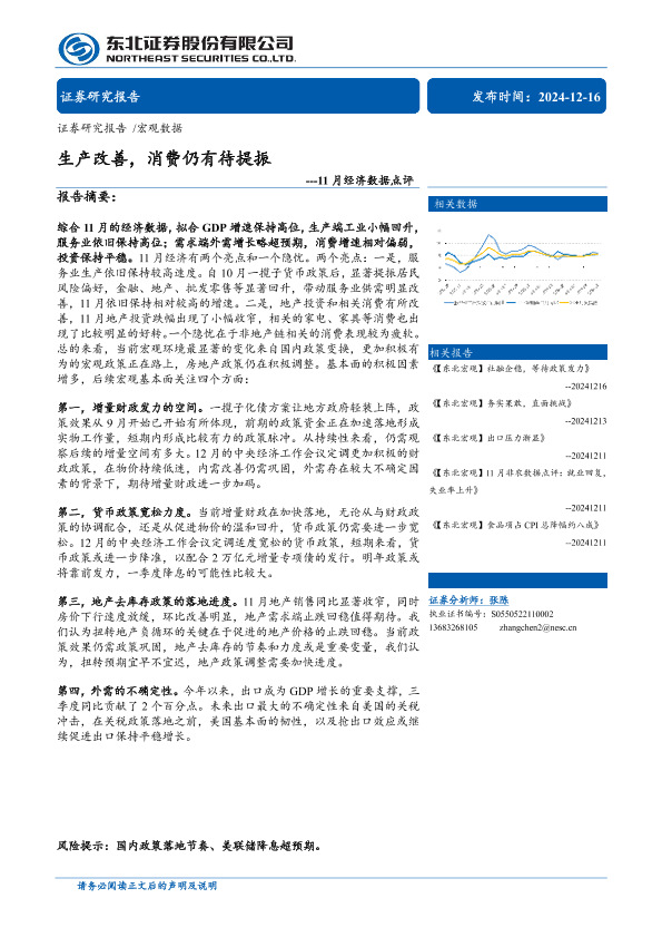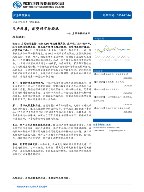 【东北证券】【20241216】11月经济数据点评:生产改善,消费仍有待提振-14页