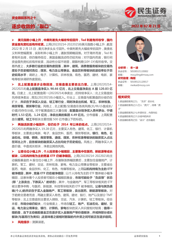 【民生证券】【20220221】资金跟踪系列之十:逐步收敛的“裂口”-27页