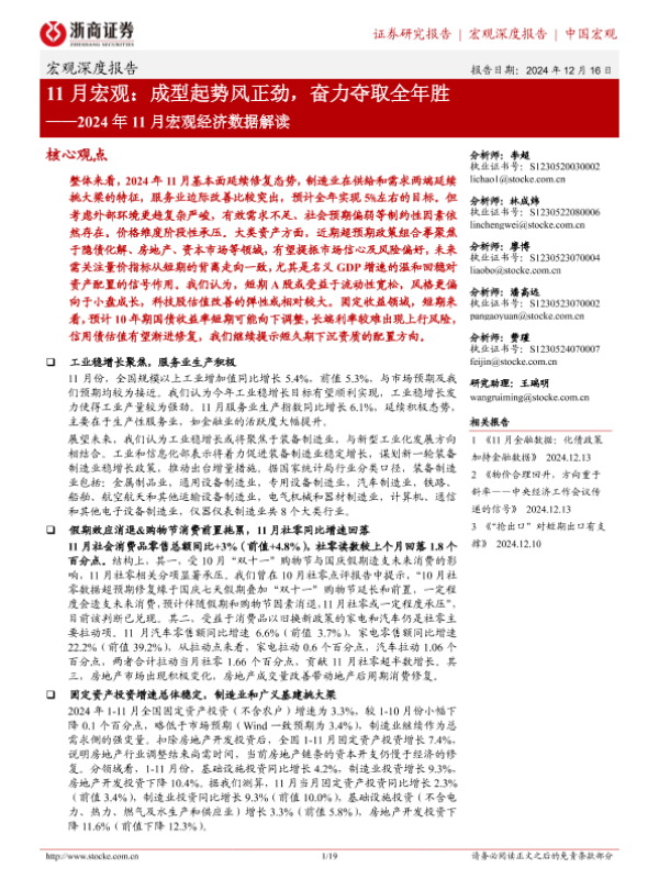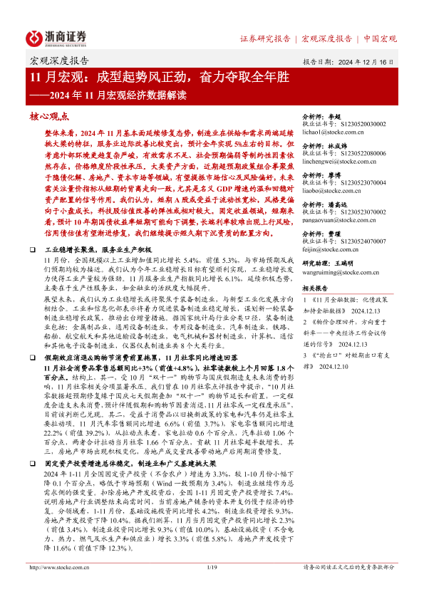 【浙商证券】【20241216】2024年11月宏观经济数据解读:11月宏观,成型起势风正劲,奋力夺取全年胜-19页