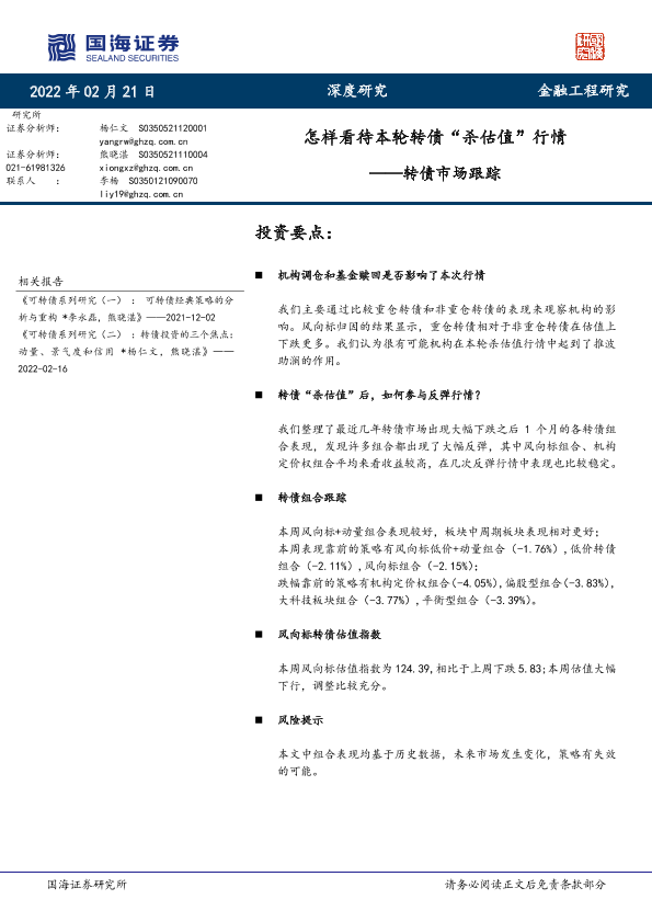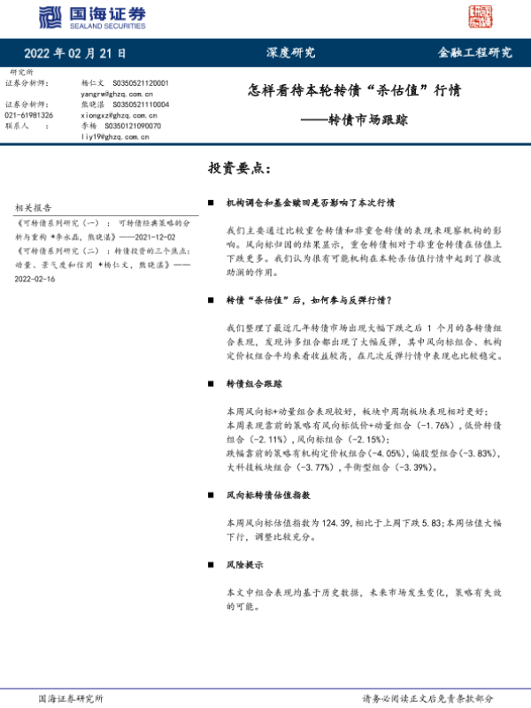 【国海证券】【20220221】转债市场跟踪:怎样看待本轮转债“杀估值”行情-19页