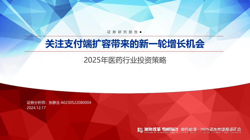 【申万宏源】【20241217】2025年医药行业投资策略:关注支付端扩容带来的新一轮增长机会-67页