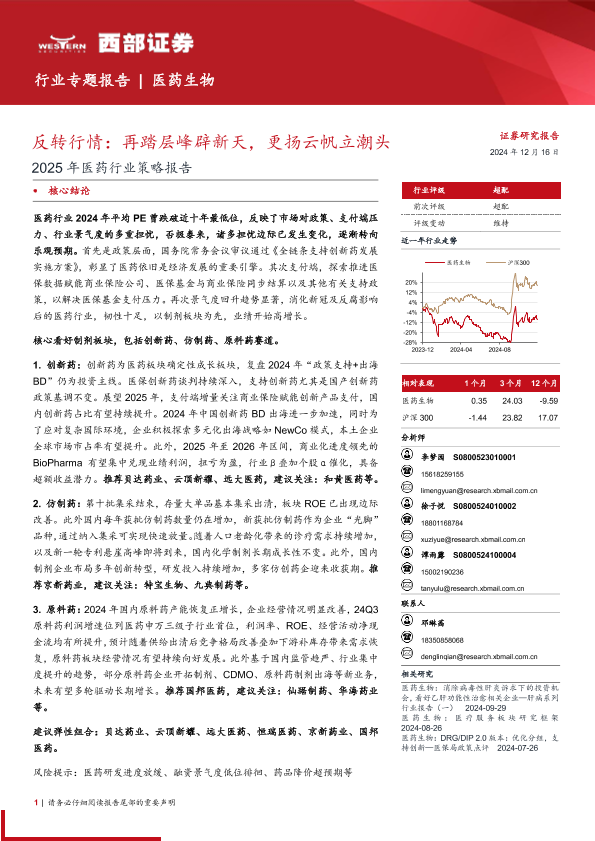 【西部证券】【20241216】2025年医药行业策略报告:反转行情,再踏层峰辟新天,更扬云帆立潮头-39页