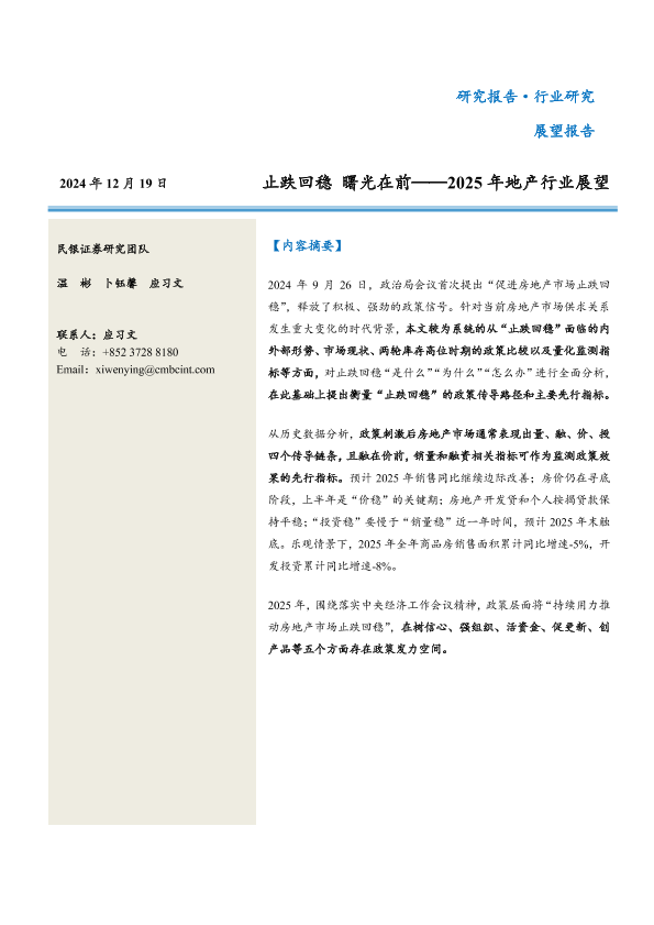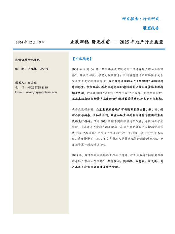 【民银证券】【20241219】2025年地产行业展望:止跌回稳,曙光在前-27页