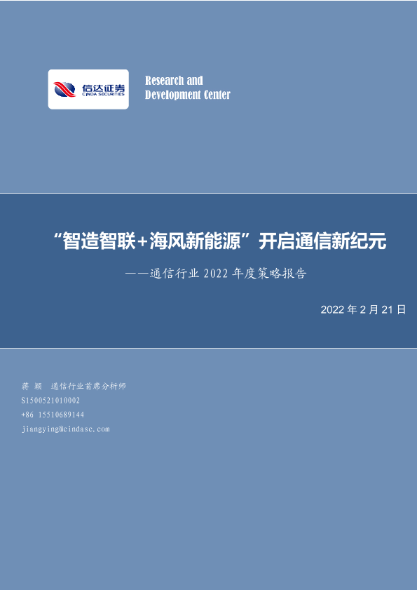 【信达证券】【20220221】通信行业2022年度策略报告:“智造智联+海风新能源”开启通信新纪元-72页