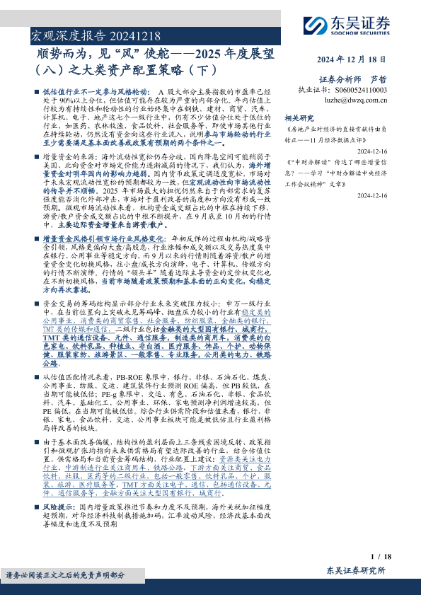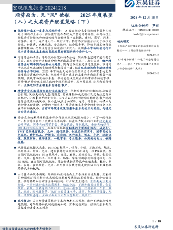 【东吴证券】【20241218】2025年度展望(八)之大类资产配置策略(下):顺势而为,见“风”使舵-18页