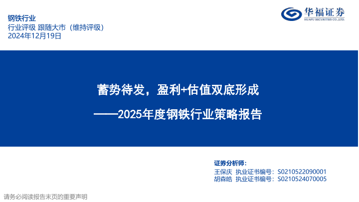 【华福证券】【20241219】2025年度钢铁行业策略报告:蓄势待发,盈利+估值双底形成-53页