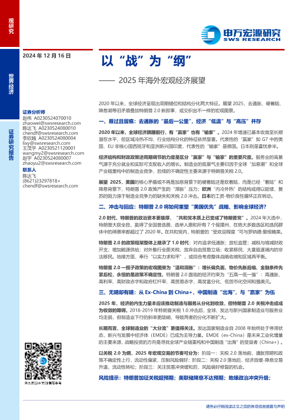 【申万宏源】【20241216】2025年海外宏观经济展望:以“战”为“纲”-30页