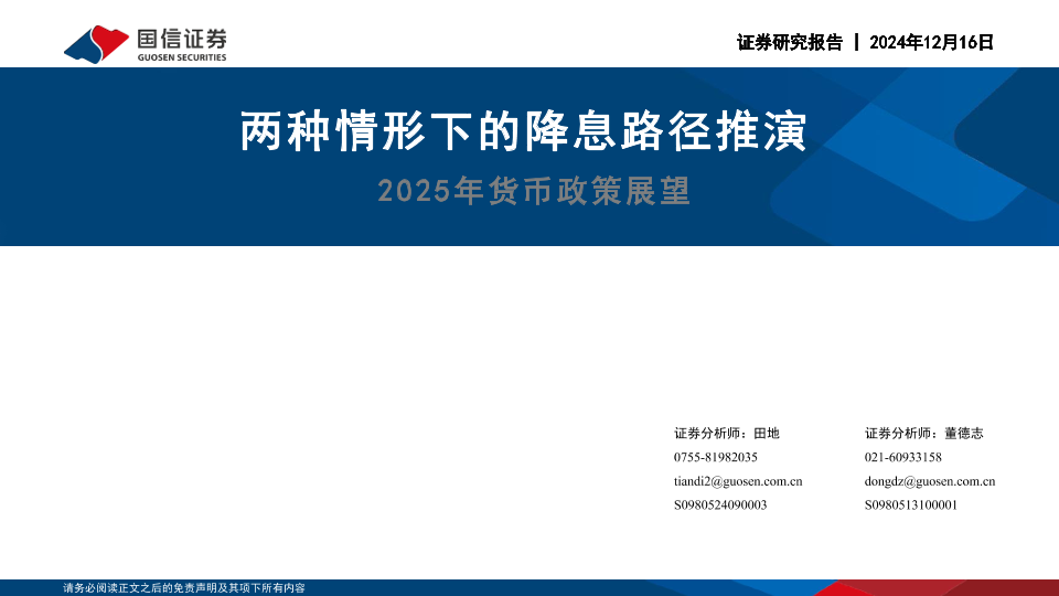 【国信证券】【20241216】2025年货币政策展望:两种情形下的降息路径推演-26页