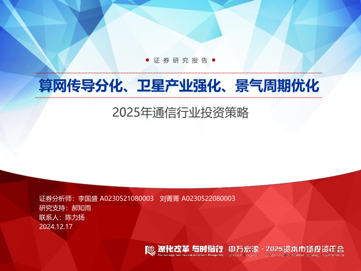 【申万宏源】【20241217】2025年通信行业投资策略:算网传导分化、卫星产业强化、景气周期优化-34页