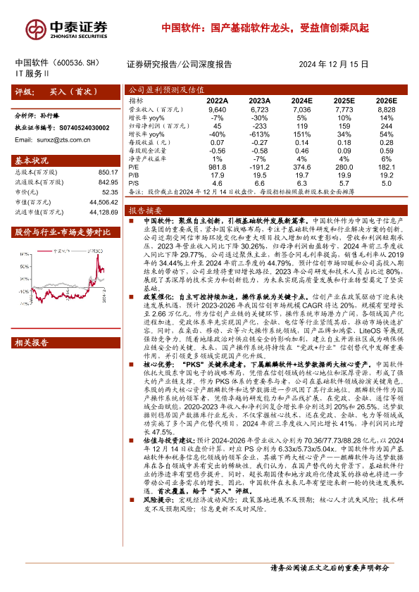 【中泰证券】【20241215】中国软件(600536)国产基础软件龙头,受益信创乘风起-26页
