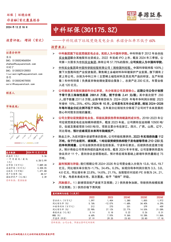 【华源证券】【20241218】中科环保(301175)中科院旗下垃圾焚烧发电企业,承诺分红率不低于60%-12页
