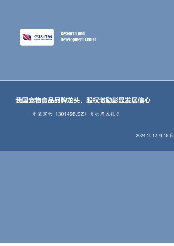 【信达证券】【20241218】乖宝宠物(301498)首次覆盖报告:我国宠物食品品牌龙头,股权激励彰显发展信心-13页