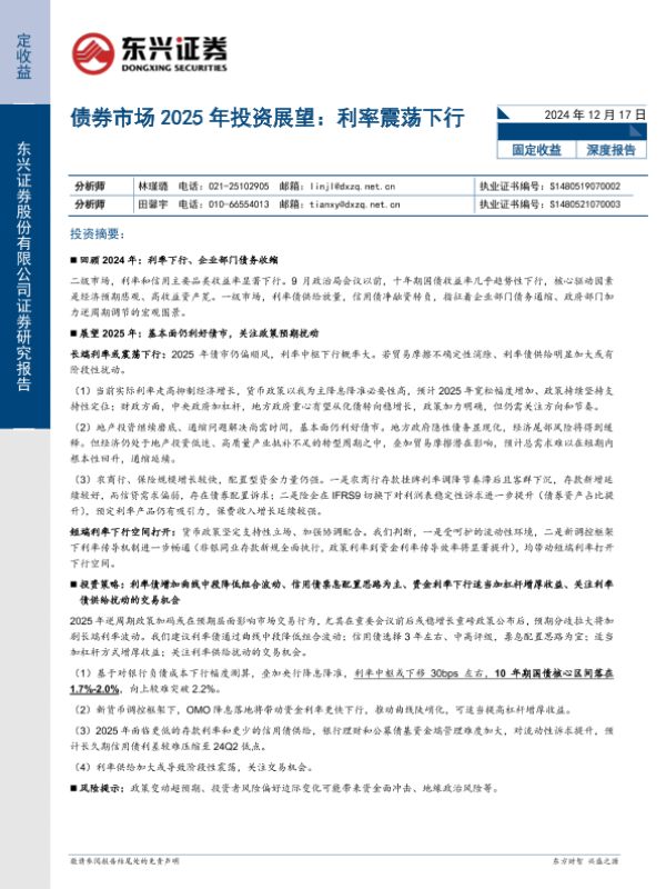 【东兴证券】【20241217】债券市场2025年投资展望:利率震荡下行-22页