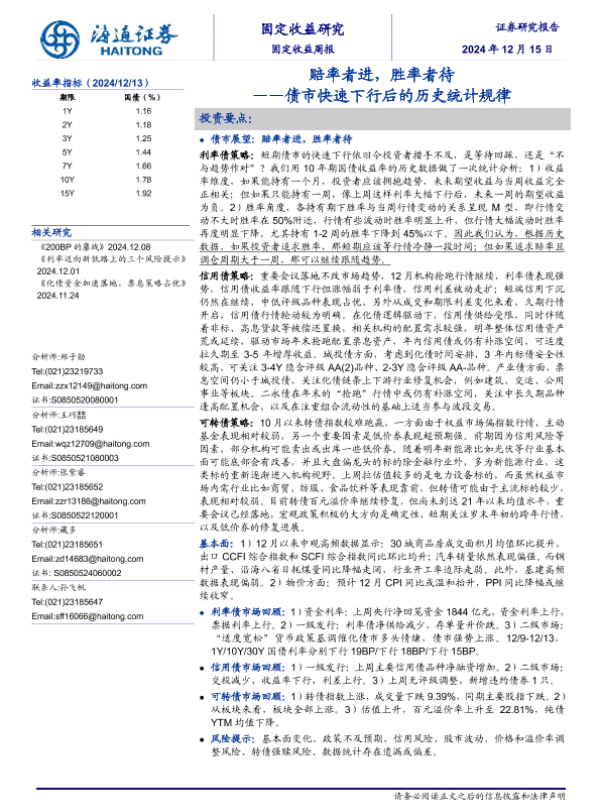 【海通证券】【20241215】债市快速下行后的历史统计规律:赔率者进,胜率者待-22页