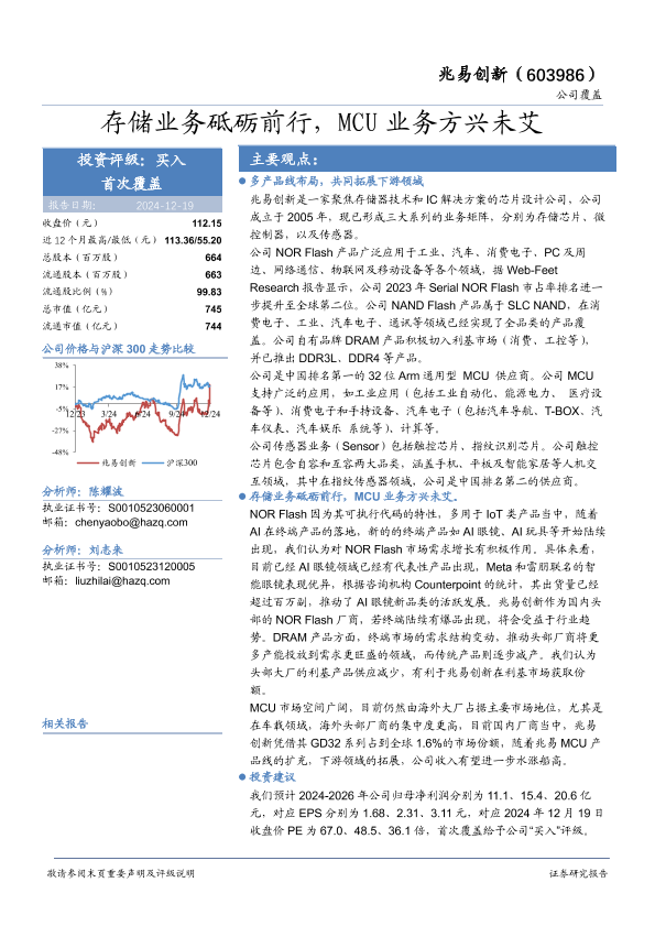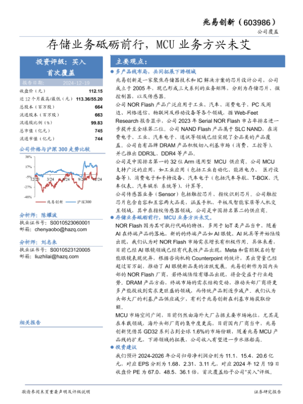 【华安证券】【20241219】兆易创新(603986)存储业务砥砺前行,MCU业务方兴未艾-26页