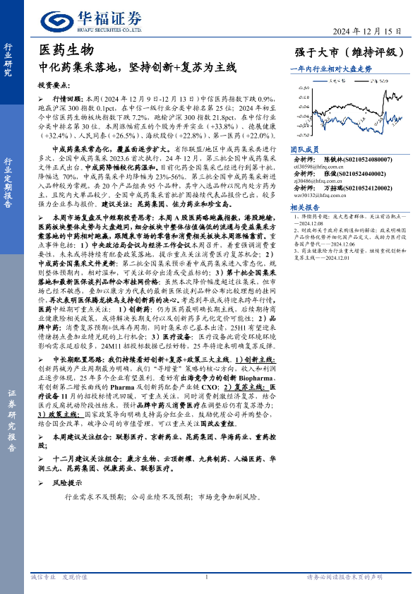 【华福证券】【20241215】医药生物行业定期报告:中化药集采落地,坚持创新+复苏为主线-17页