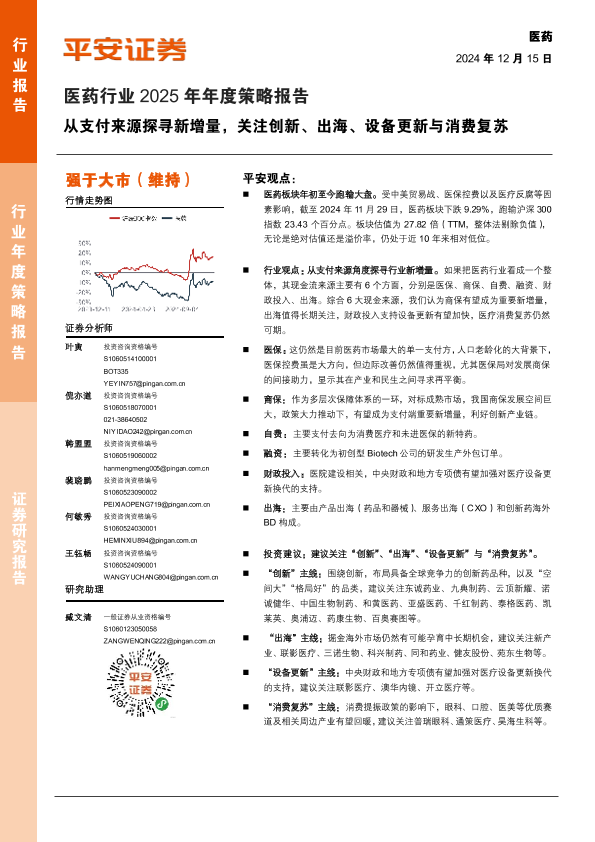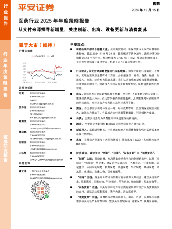 【平安证券】【20241215】医药行业2025年年度策略报告:从支付来源探寻新增量,关注创新、出海、设备更新与消费复苏-59页