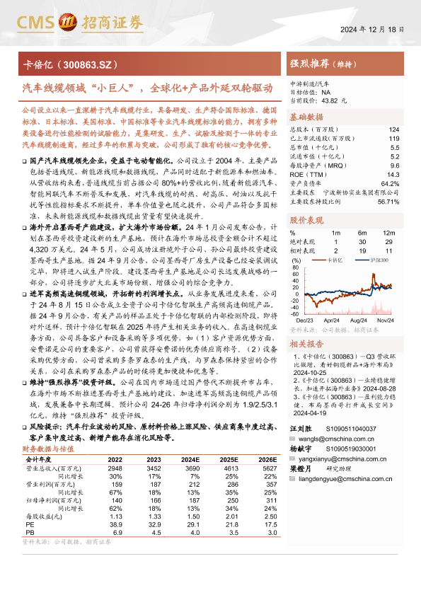 【海通证券】【20241218】卡倍亿(300863)汽车线缆领域小巨人,全球化产品外延双轮驱动-15页