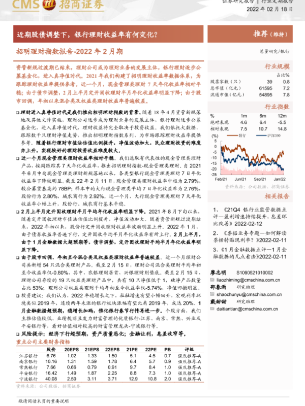 【海通证券】【20220218】银行业招明理财指数报告2022年2月期:近期股债调整下,银行理财收益率有何变化?-16页