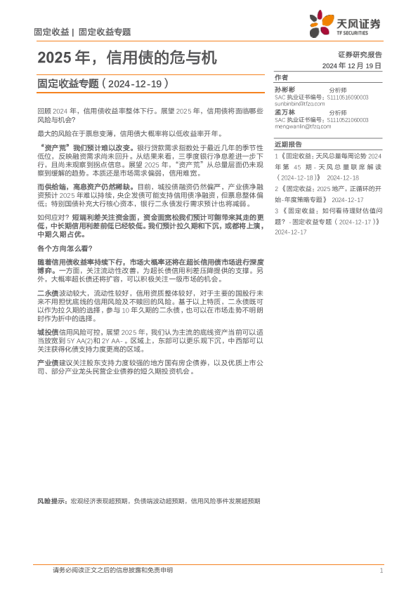 【天风证券】【20241219】固定收益专题:2025年,信用债的危与机-18页