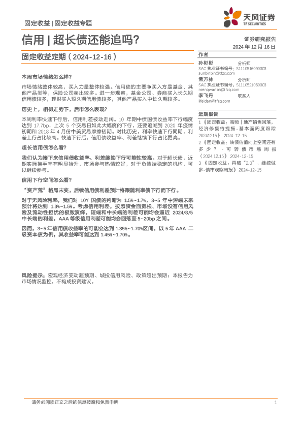 【天风证券】【20241216】固定收益定期:信用,超长债还能追吗?-24页