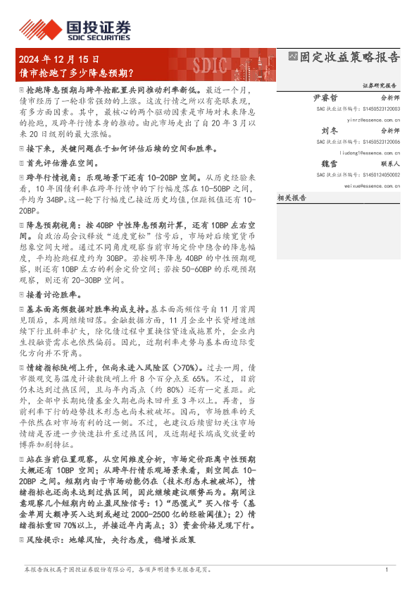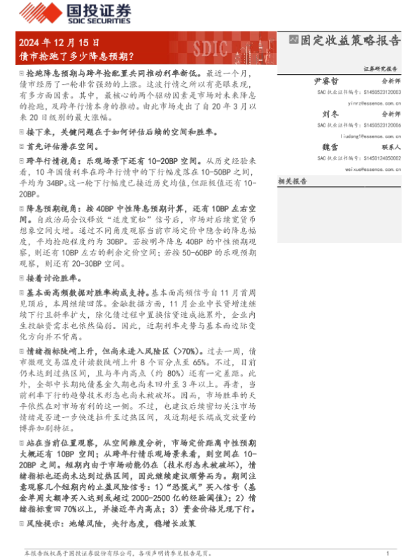 【国投证券】【20241215】固定收益策略报告:债市抢跑了多少降息预期?-12页